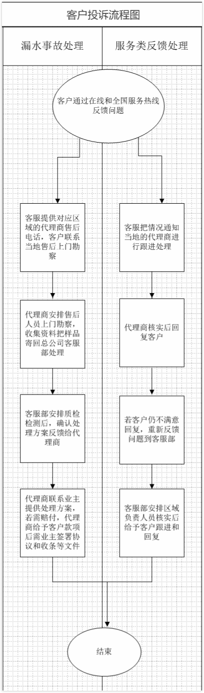 管道类产品以及角阀、快开龙头,编织软管等小五金类产品的投诉原则上需要取得样品,并将投诉样品寄回公司检测分析。